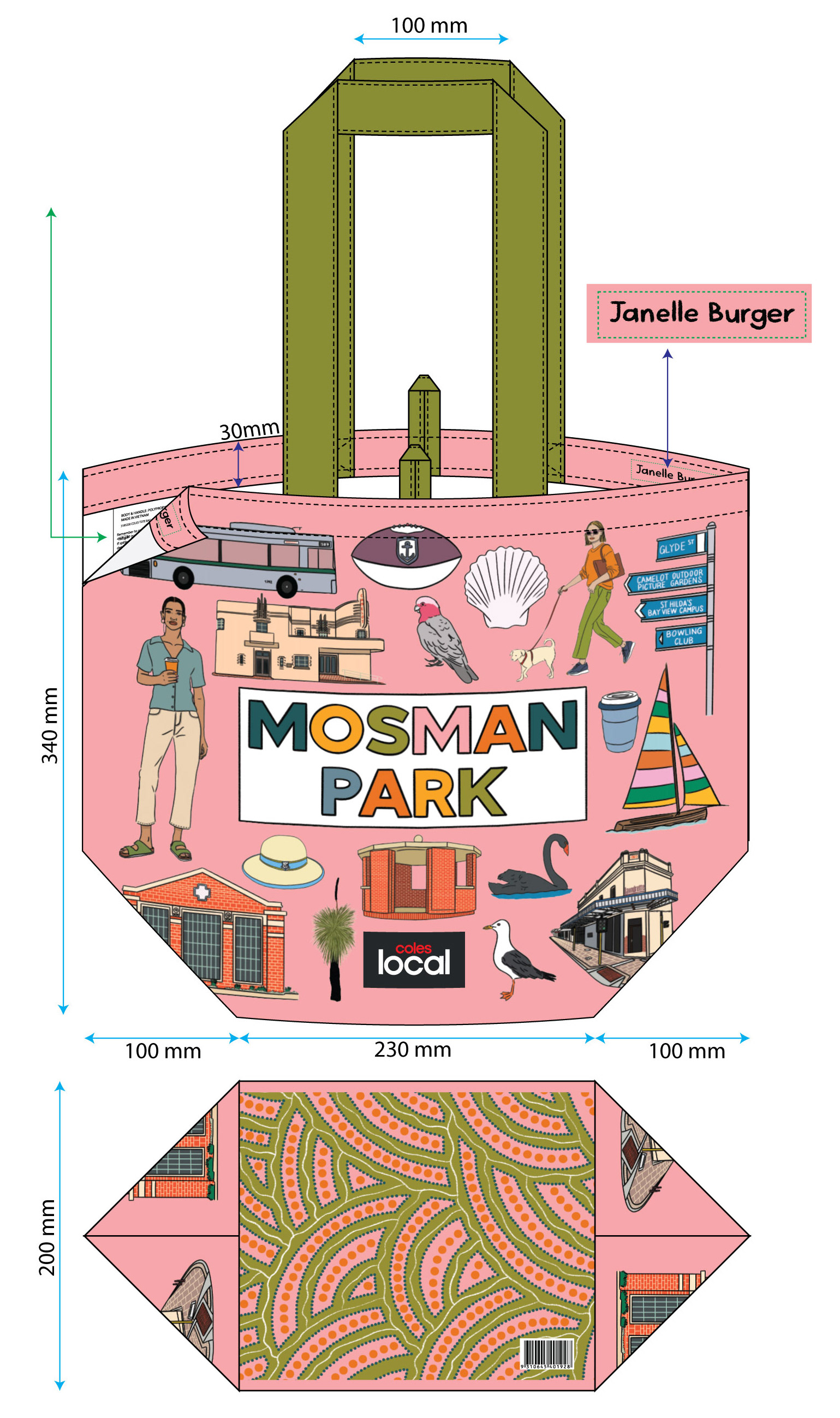 Designed for Coles Local: Mosman Park, this tote bag draws inspiration from the suburb’s everyday life. Illustrated landmarks, street signs, and local figures come together to reflect the spirit of the community. Priced at $2 in-store, the tote was created as an affordable and functional piece of local identity.