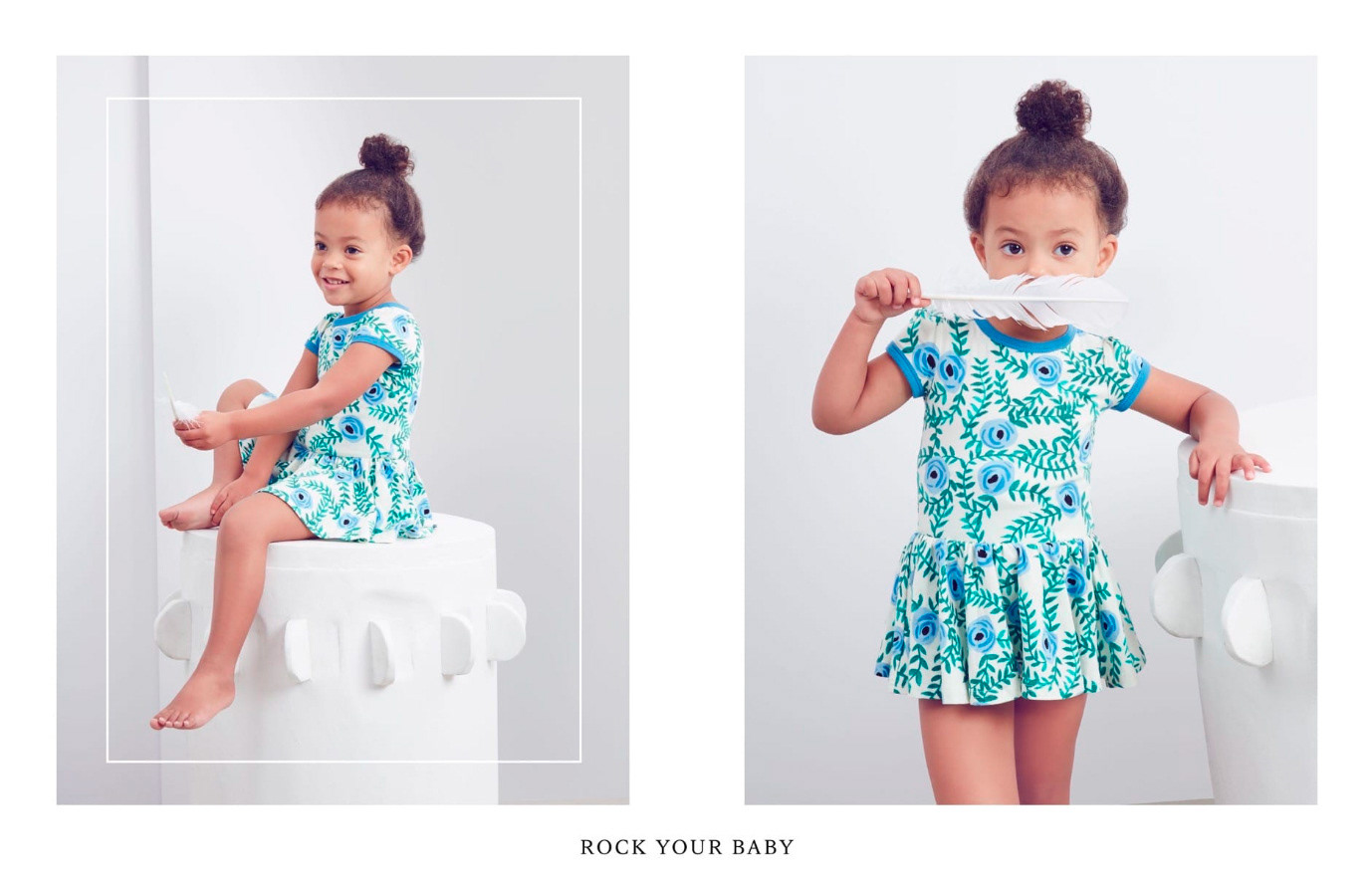 Hand painted flowers onto textiles for Children's wear brand Rock Your Baby. Sold exclusively at David Jones, Australia.